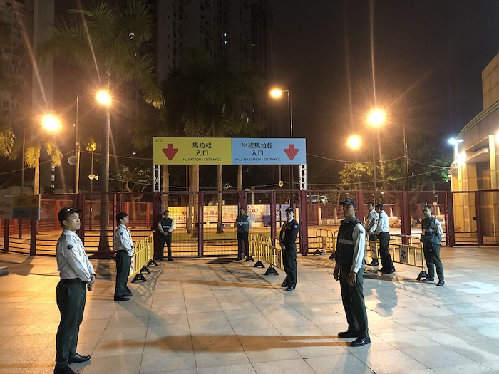 Guardforce The security staff of Macau Weian adhered to the customer-first security service spirit and arrived at the event venue at 3 am, showing the firm commitment and professional attitude of the team to ensure the safety and success of the event.