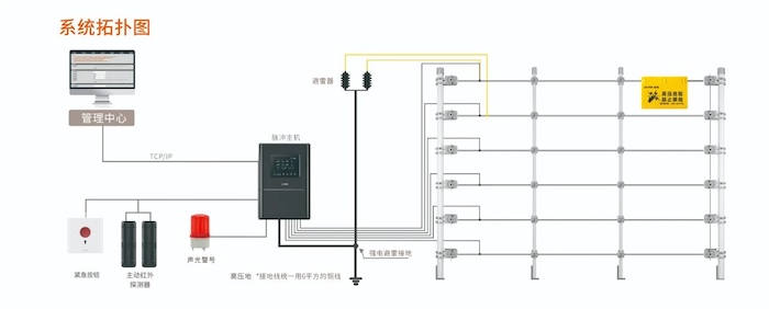 The electronic pulse of the system scans every wire of the front-end fence 60 times per minute, and the peak value of each pulse varies between 700V-5000V depending on the set value. It can retaliate against illegal intrusion through instantaneous voltage.