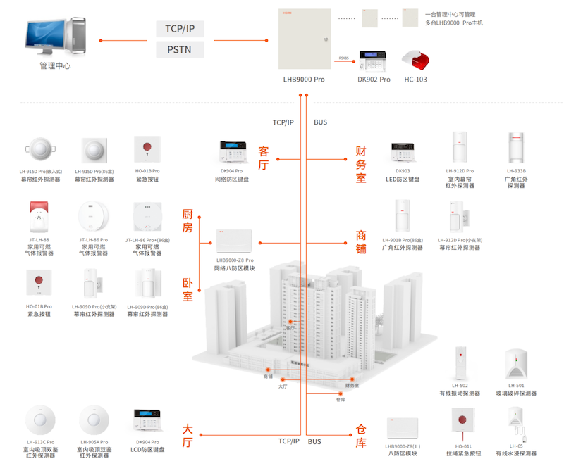 豪恩建筑報(bào)警解決方案系統(tǒng)拓?fù)鋱D