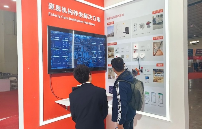 展會現(xiàn)場,豪恩展示了社區(qū)+居家、機(jī)構(gòu)養(yǎng)老解決方案,以智慧養(yǎng)老綜合管理平臺為核心,統(tǒng)一管理各種前端智能養(yǎng)老設(shè)備,用科技手段幫助老人安心生活,幸福養(yǎng)老。