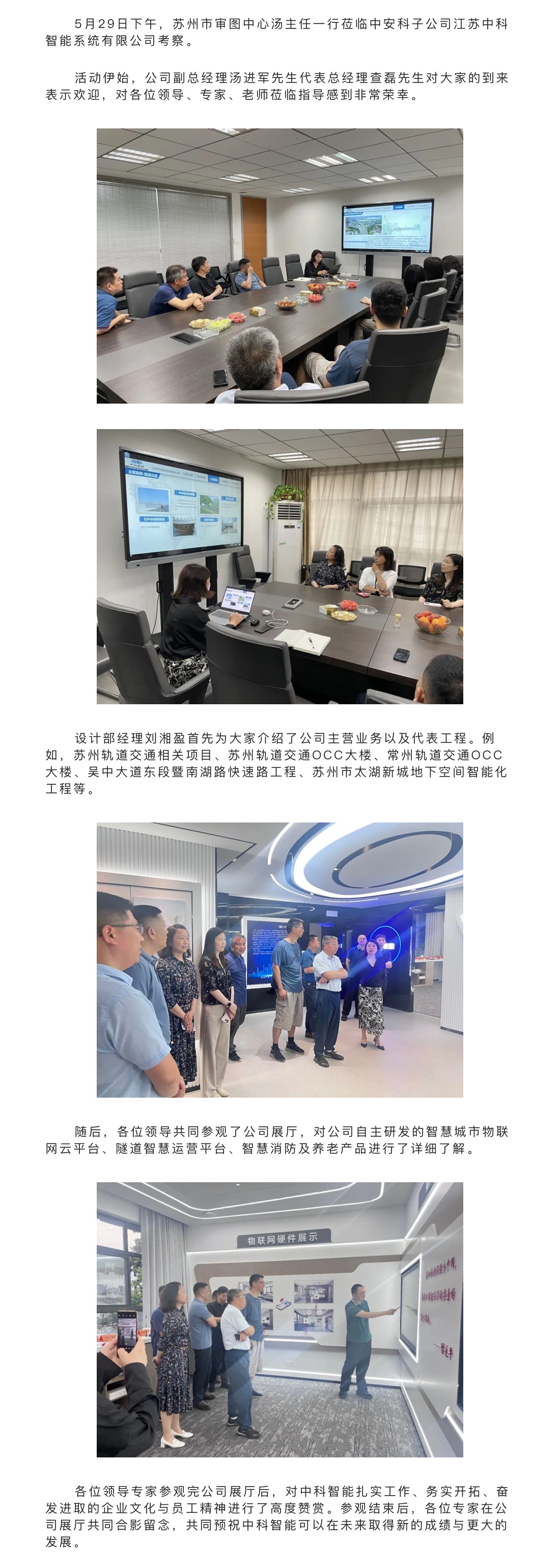 蘇州市審圖中心湯主任一行蒞臨中安科子公司江蘇中科智能系統(tǒng)有限公司考察