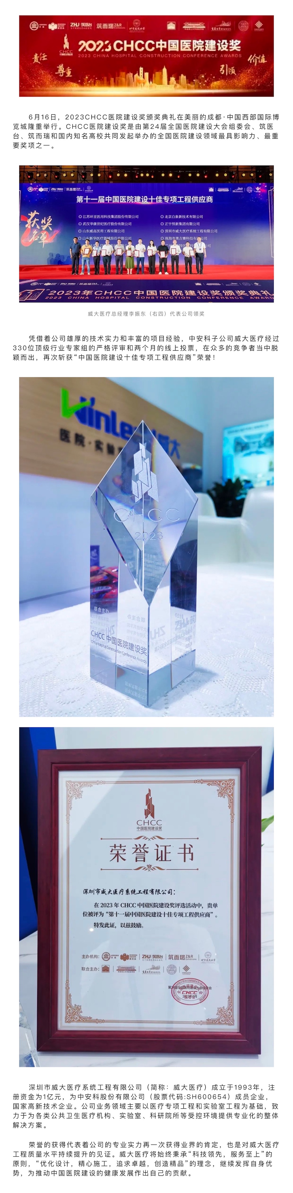 喜訊|中安科子公司威大醫(yī)療再次榮獲“中國(guó)醫(yī)院建設(shè)十佳專項(xiàng)工程供應(yīng)商”殊榮