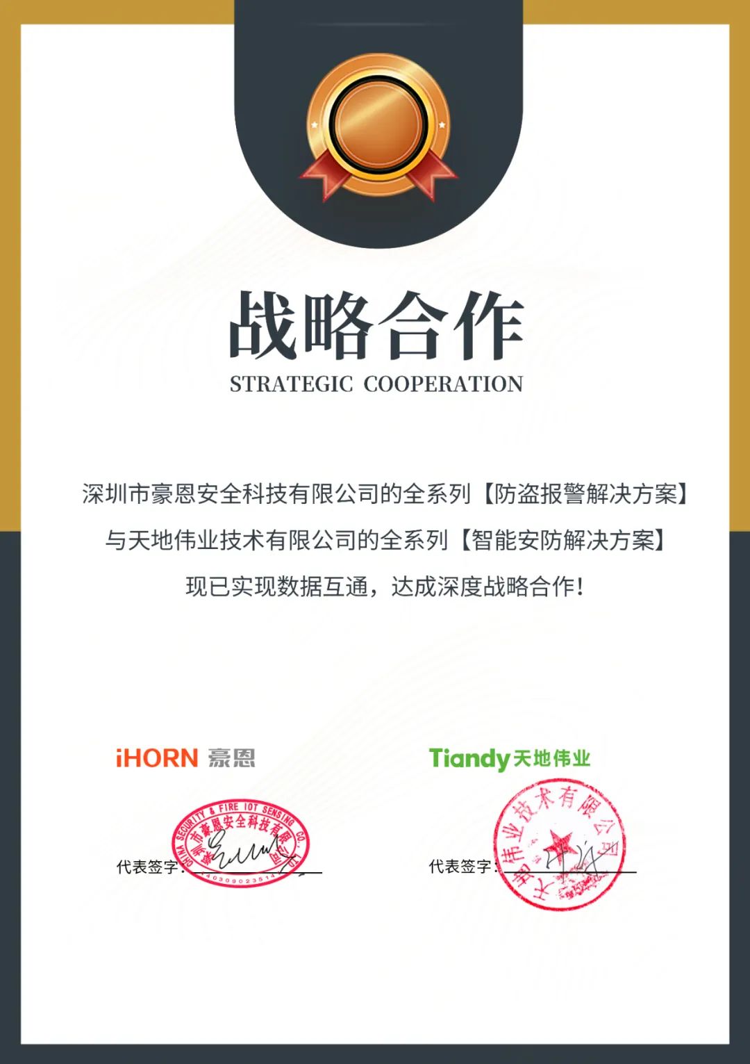 近日,中安科子公司 —— 深圳市豪恩安全科技有限公司(以下簡(jiǎn)稱(chēng)“豪恩”)的全系列防盜報(bào)警解決方案與天地偉業(yè)技術(shù)有限公司(以下簡(jiǎn)稱(chēng)“天地偉業(yè)”)的全系列智能安防解決方案已實(shí)現(xiàn)數(shù)據(jù)互通,達(dá)成深度戰(zhàn)略合作!