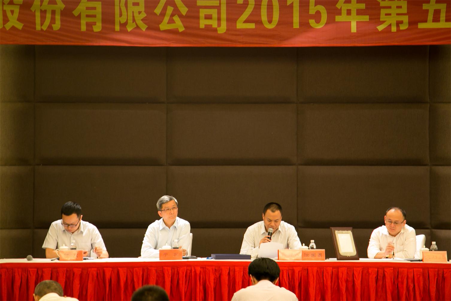 圖1,股東大會現(xiàn)場,董事長:涂國身(左三);董事:于東(左二)、吳巧民(左四);董事會秘書:付欣(左一)。