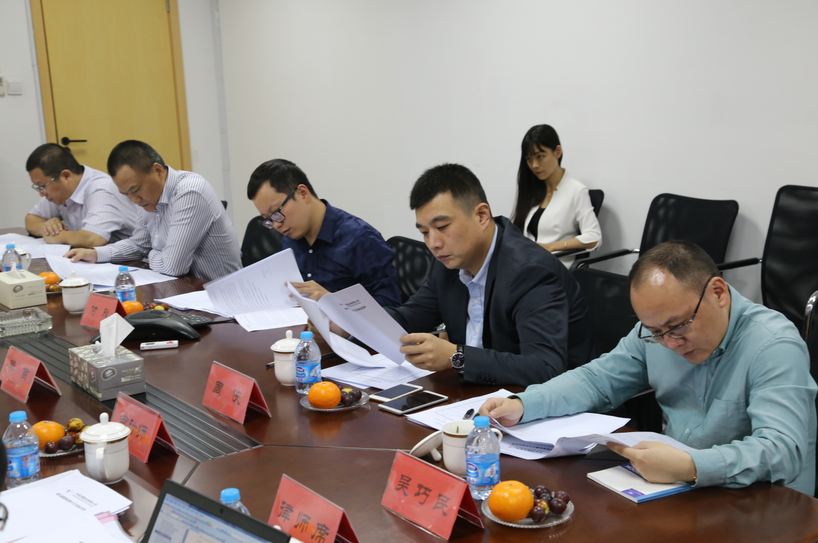 董事會(huì)、監(jiān)事會(huì)會(huì)議現(xiàn)場(chǎng) 董事長(zhǎng)涂國(guó)身(左二);董事:周俠(右二)、吳巧民(右一)、郝軍(左一);董事會(huì)秘書付欣(右三)
