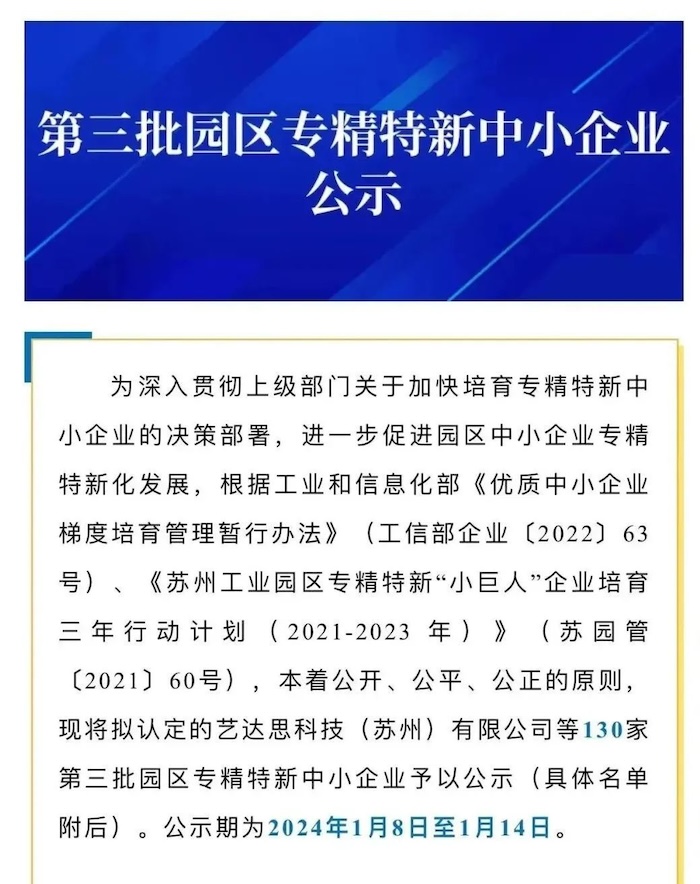 近日,江蘇省蘇州市工業(yè)園區(qū)公示了《第三批園區(qū)專精特新中小企業(yè)名單》,江蘇中科智能系統(tǒng)有限公司通過層層篩選,躋身其中,獲評(píng)“園區(qū)專精特新中小企業(yè)”。