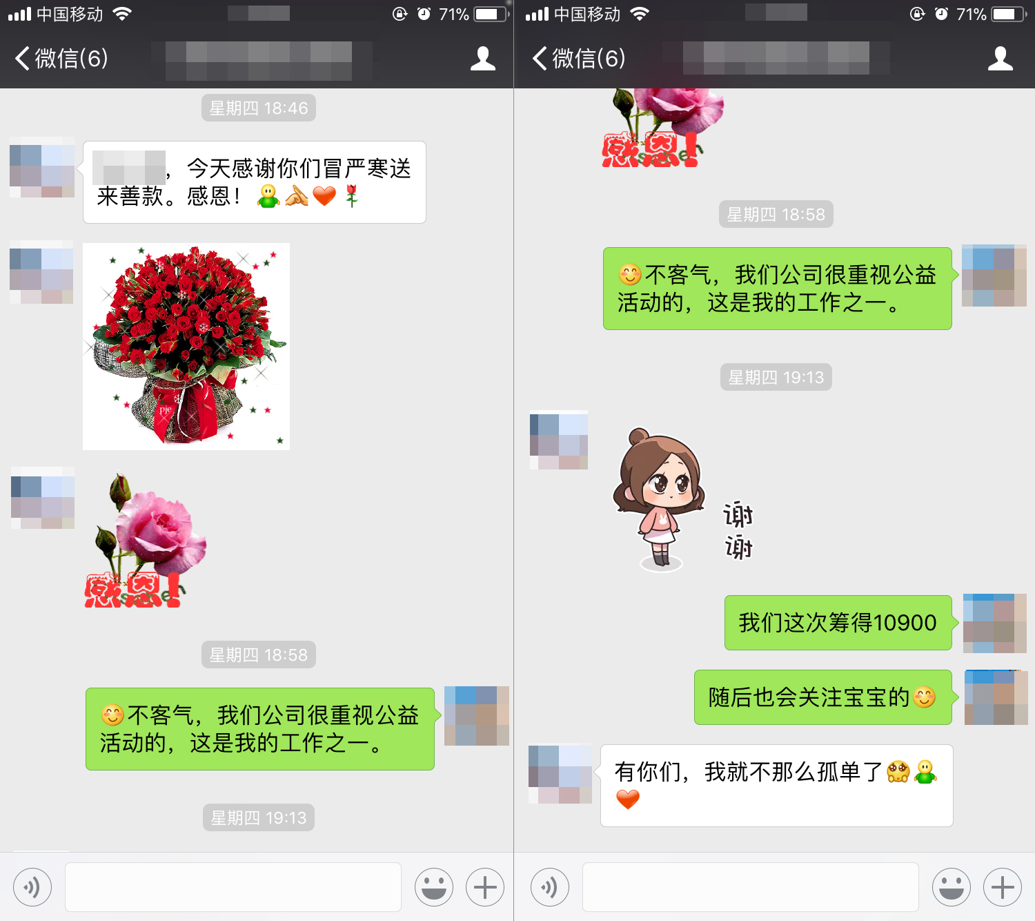 1月中旬,在活動接近尾聲之際,中安科股份派遣代表前往雙胞胎母親丁女士工作地點(diǎn),將所有善款10900元親自交予她本人手中。丁女士接到善款之后非常感動,在志愿者走后再次發(fā)微信表示感激之情,“謝謝你們冒嚴(yán)寒送來善款,有了你們,我就不那么孤單了”。
