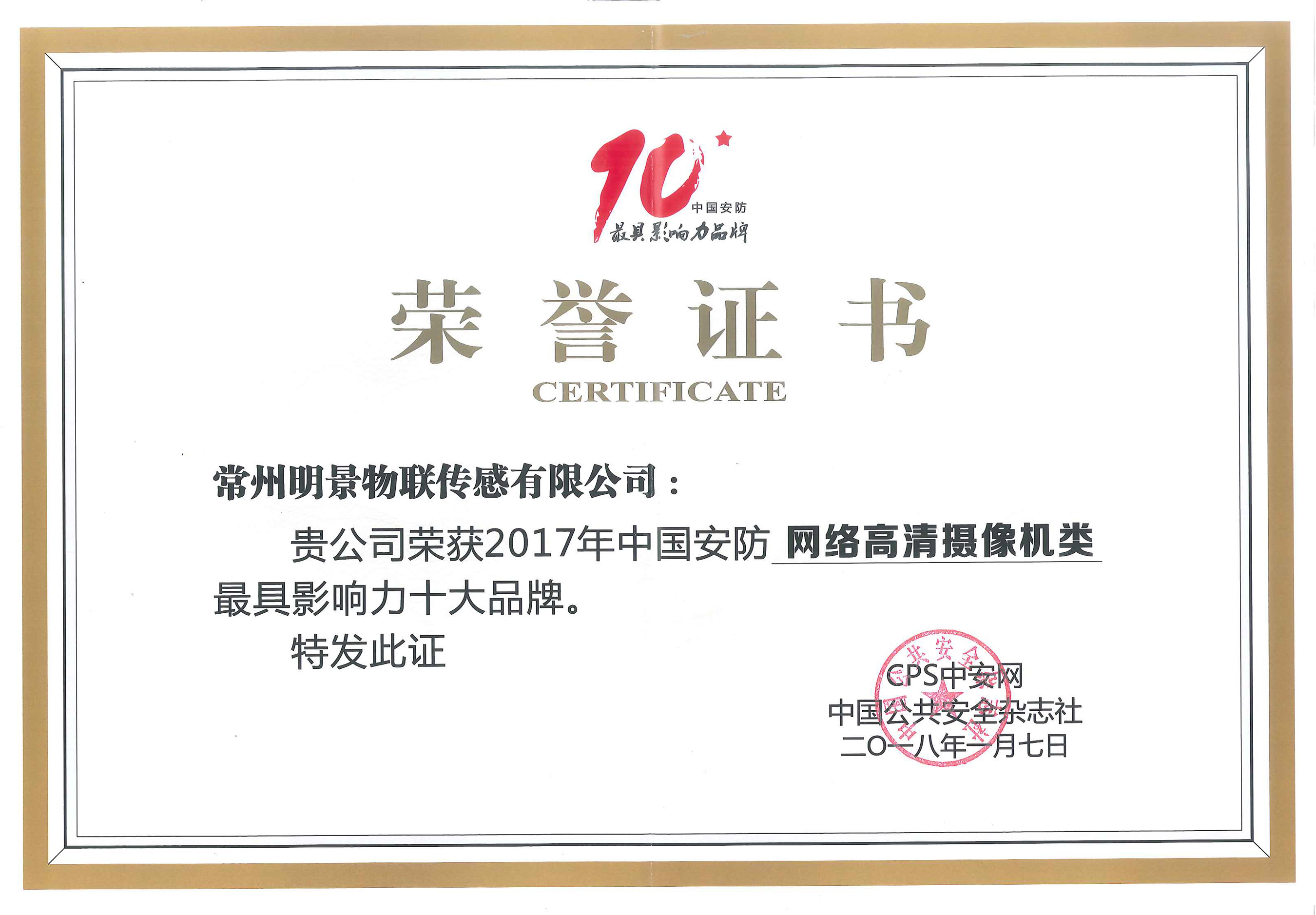 近日,以“數(shù)字安防、智能交通、智慧城市”為主題,由深圳市安全防范行業(yè)協(xié)會、深圳市智能交通行業(yè)協(xié)會、深圳市智慧城市產(chǎn)業(yè)協(xié)會、全國城市安防協(xié)會合作互助聯(lián)盟、中國公共安全雜志社等主辦的“2018全國安防界迎春團(tuán)拜會”在深圳世界之窗凱撒宮隆重舉行。中安科股份成員企業(yè)常州明景物聯(lián)傳感有限公司(以下簡稱明景)憑借其產(chǎn)品研發(fā)實力脫穎而出,榮獲2017年中國安防“網(wǎng)絡(luò)高清攝像機(jī)類”最具影響力十大品牌。