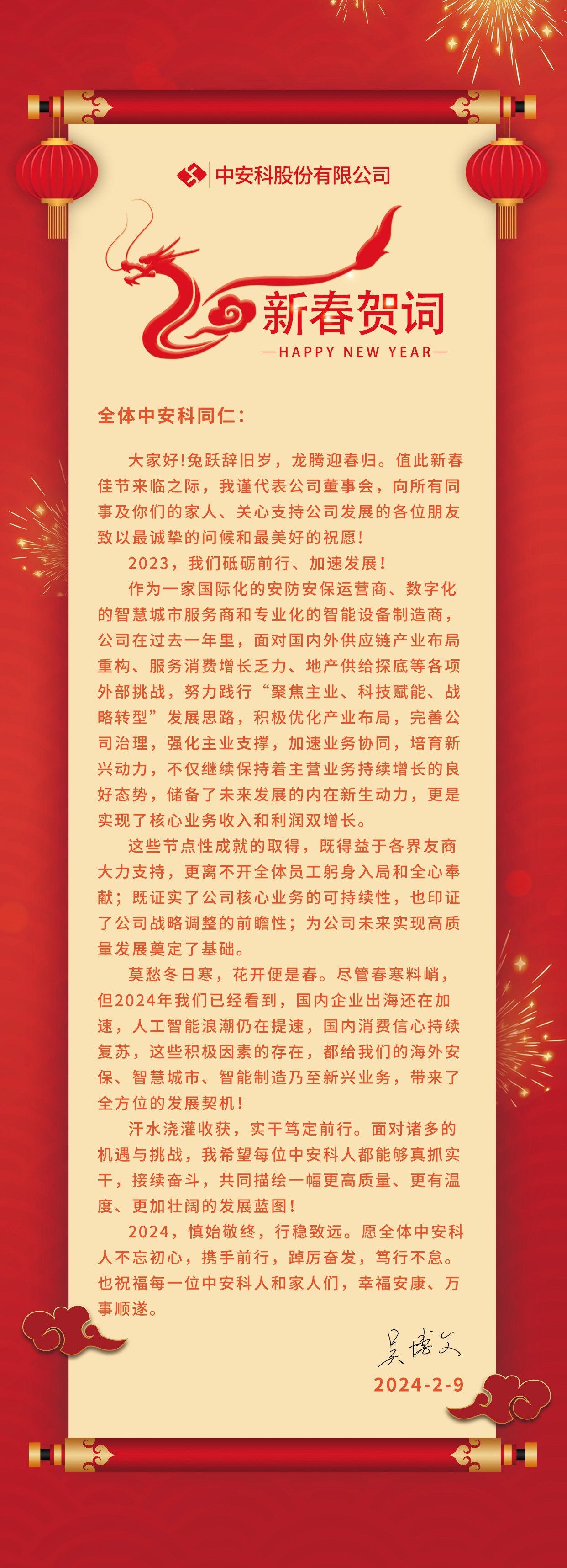 中安科股份有限公司2024新春賀詞