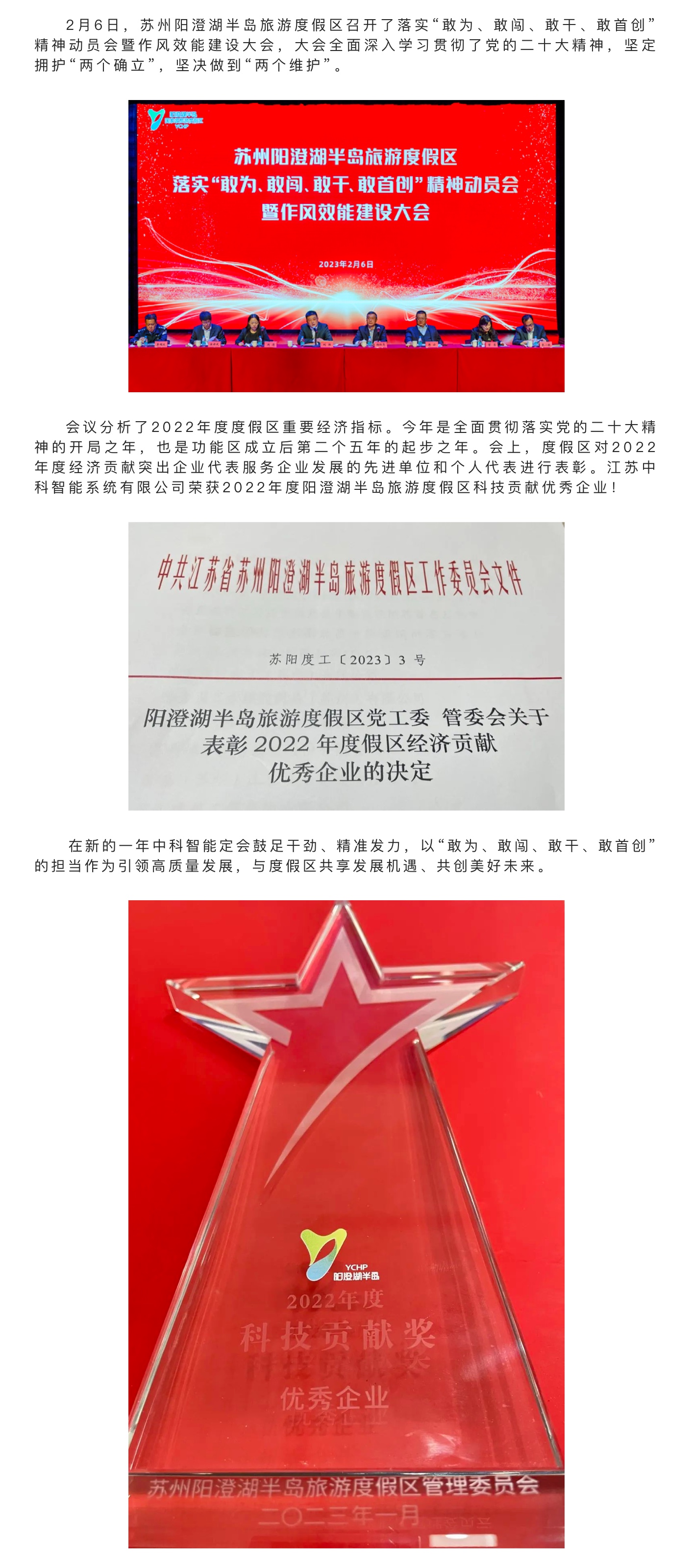 喜報(bào)!中安科子公司——江蘇中科智能榮獲2022年度陽澄湖半島旅游度假區(qū)科技貢獻(xiàn)獎(jiǎng)