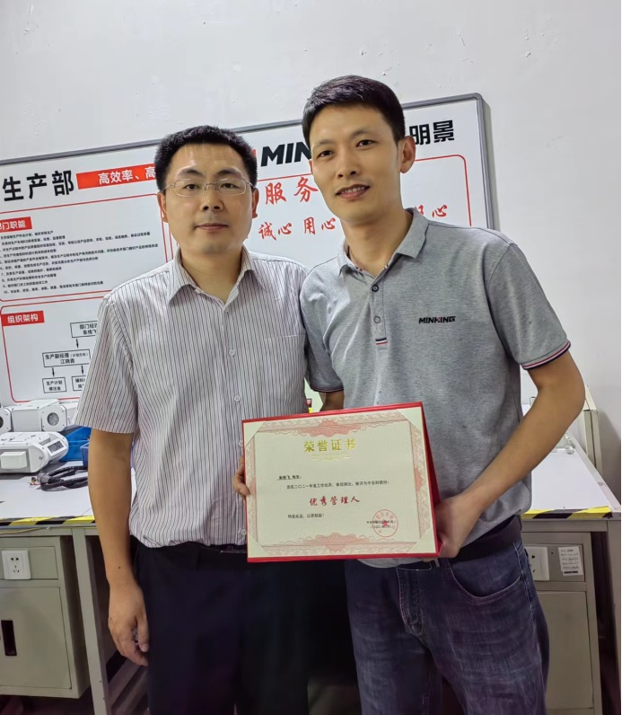 “優(yōu)秀管理人”——朱傳飛,生產(chǎn)部經(jīng)理兼售后服務(wù)經(jīng)理,作為生產(chǎn)管理第一責(zé)任人,2021年通過(guò)帶領(lǐng)技術(shù)骨干調(diào)整工序、優(yōu)化工藝流程(攻關(guān)改進(jìn)92項(xiàng))等,極大的提高了產(chǎn)能,與上一年相比,入庫(kù)產(chǎn)量提升18.7%、入庫(kù)產(chǎn)值提升36%;帶領(lǐng)團(tuán)隊(duì)的售后團(tuán)隊(duì)年度維修及時(shí)率96%、維修總量2113件、維修質(zhì)量100%、零投訴、售后服務(wù)滿意度100%,并創(chuàng)造了二次銷(xiāo)售與盈利;作為生產(chǎn)安全第一責(zé)任人,定期組織宣導(dǎo)安全教育,做到全年生產(chǎn)財(cái)產(chǎn)、人身安全零事故。