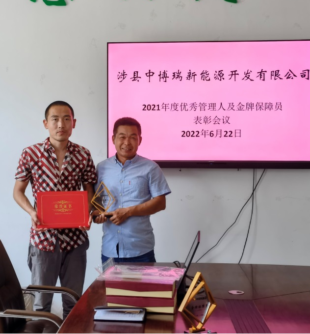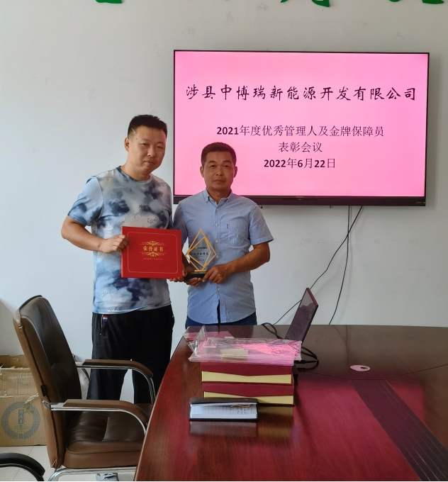 表彰大會(huì)上,由公司總經(jīng)理季益華先生為徐中艦頒發(fā)了獎(jiǎng)杯、榮譽(yù)證書(shū)及感謝信,楊洪磊因公未能出席現(xiàn)場(chǎng)。