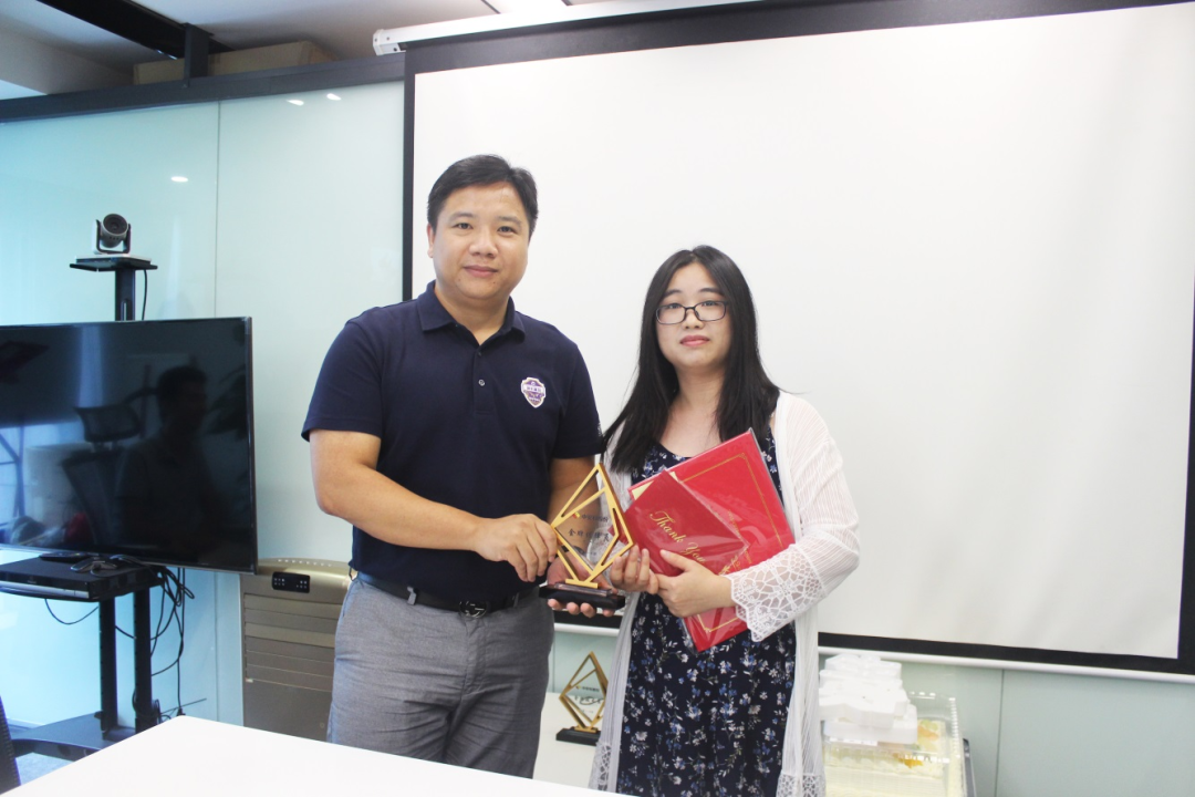 表彰大會(huì)上,由公司常務(wù)副總經(jīng)理趙倩女士為劉泉香、左有為頒發(fā)了獎(jiǎng)杯、榮譽(yù)證書(shū)及感謝信。