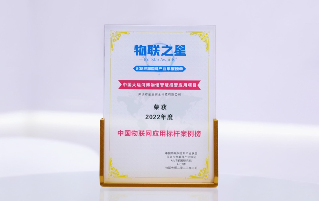 經(jīng)過多月的激烈角逐,中安科子公司豪恩的中國大運(yùn)河博物館智慧報(bào)警應(yīng)用項(xiàng)目,從數(shù)百余家參評(píng)企業(yè)中脫穎而出,榮登2022“物聯(lián)之星”年度榜單之「中國物聯(lián)網(wǎng)應(yīng)用標(biāo)桿案例榜」,成為豪恩博物館安防報(bào)警解決方案中的典型代表案例。